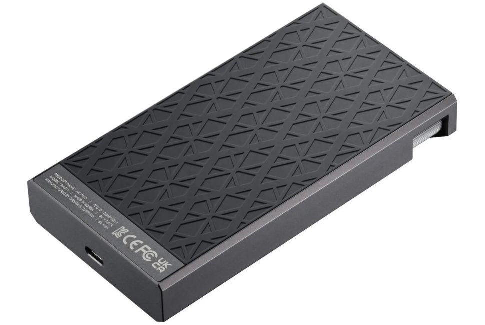 Le logo Astell&Kern sur le côté assure une prise en main sûre. La conception monobloc, avec son patin en caoutchouc intégré au lecteur, offre un design épuré, sans joint apparent.