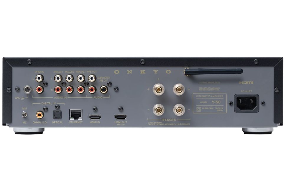 Riche en connectiques audio, Muse Y-50 dispose de trois paires d’entrées analogiques RCA, d’une entrée COAX, d’une entrée phono (compatible MM/MC), ainsi que d’une entrée HDMI / HDMI ARC et d’une sortie HDMI pour le son des contenus vidéo et gaming.